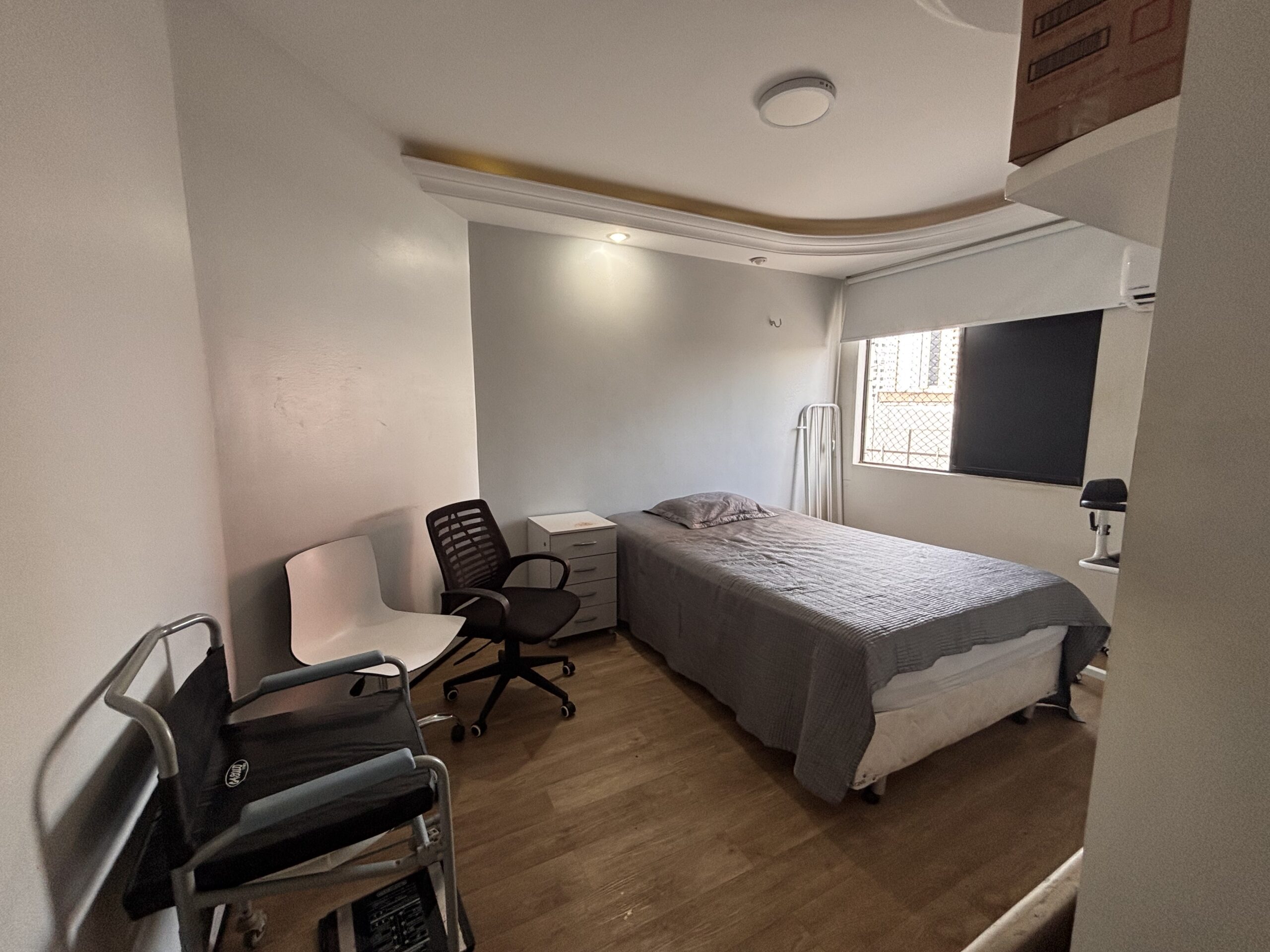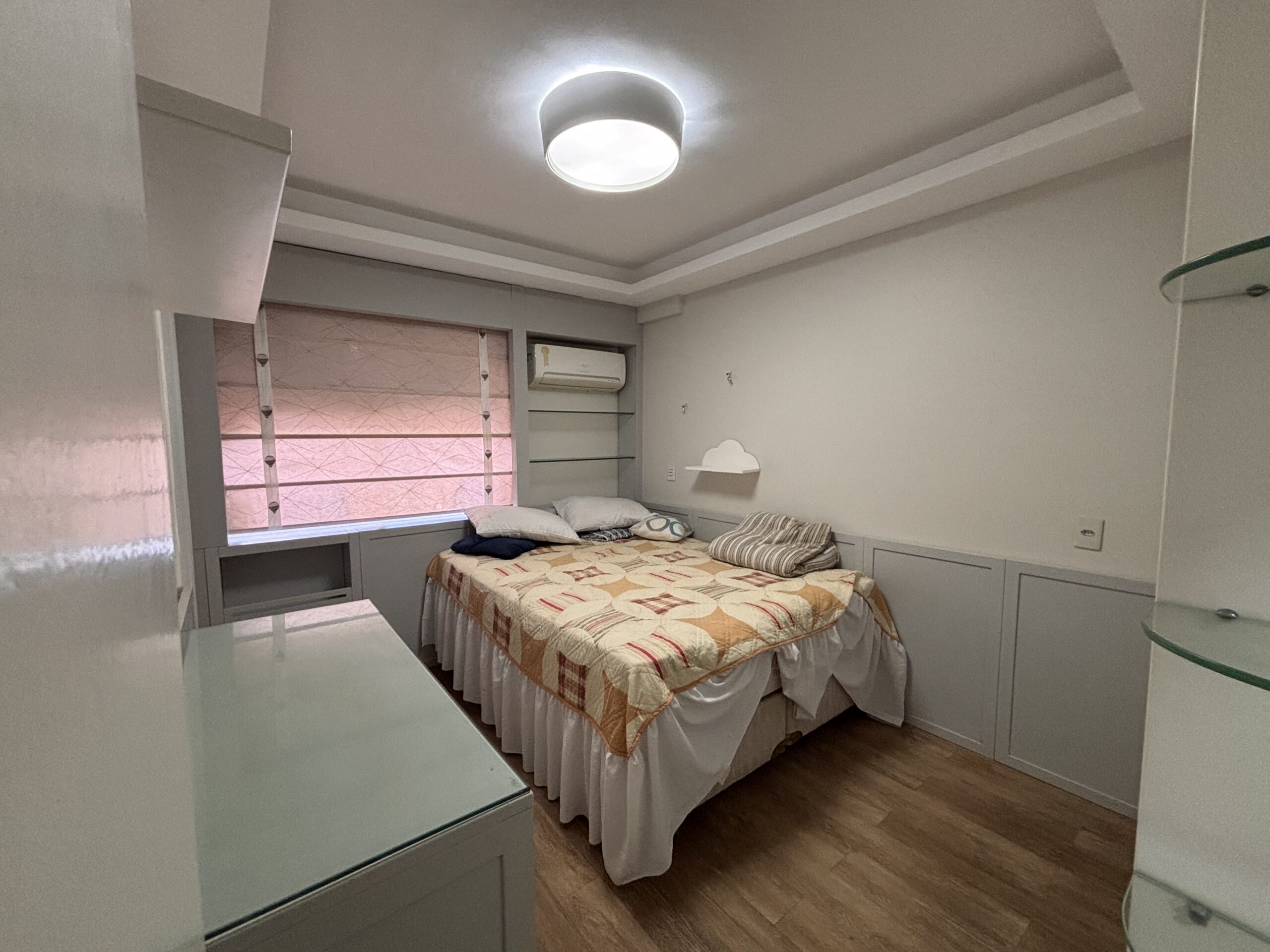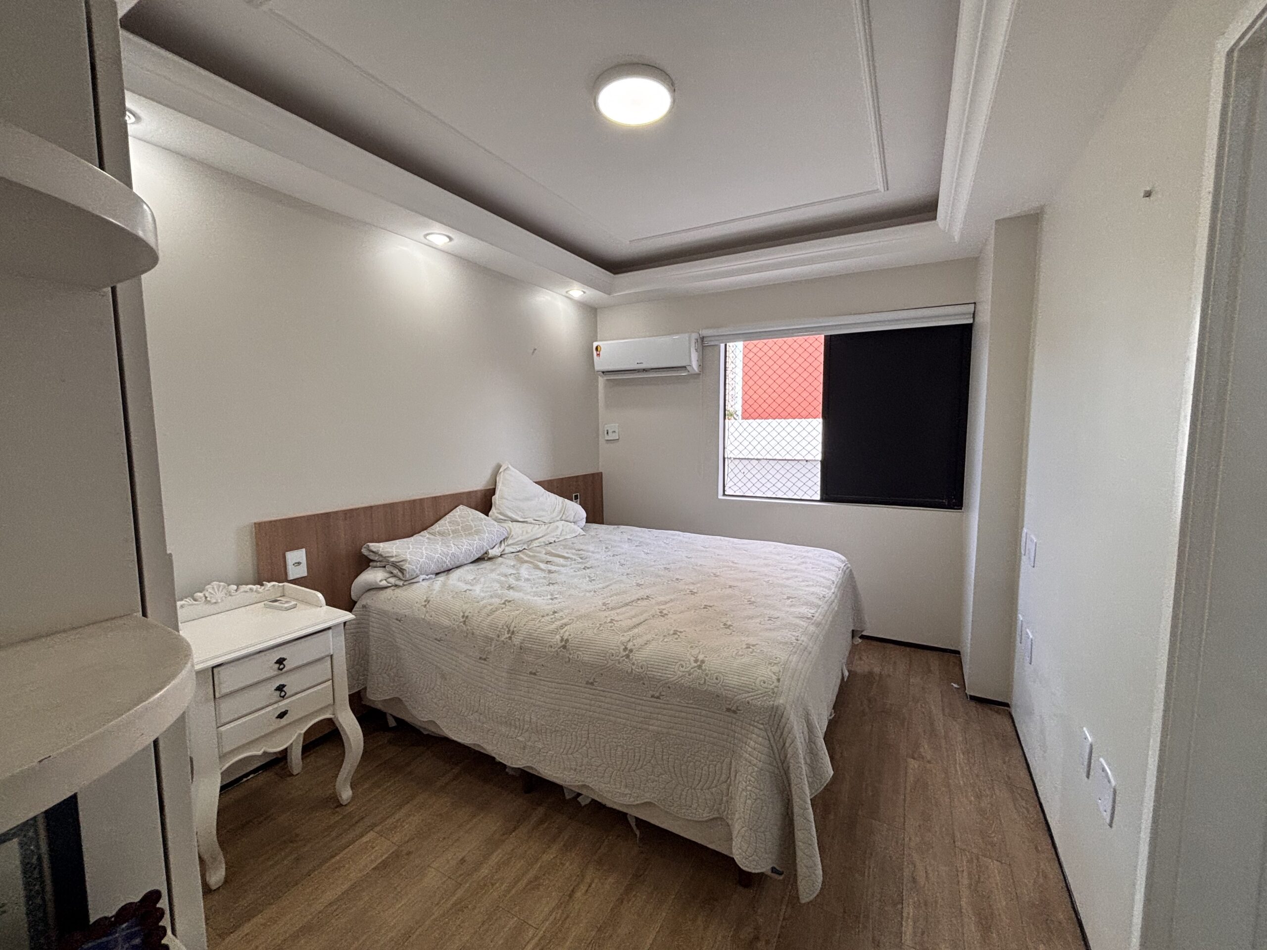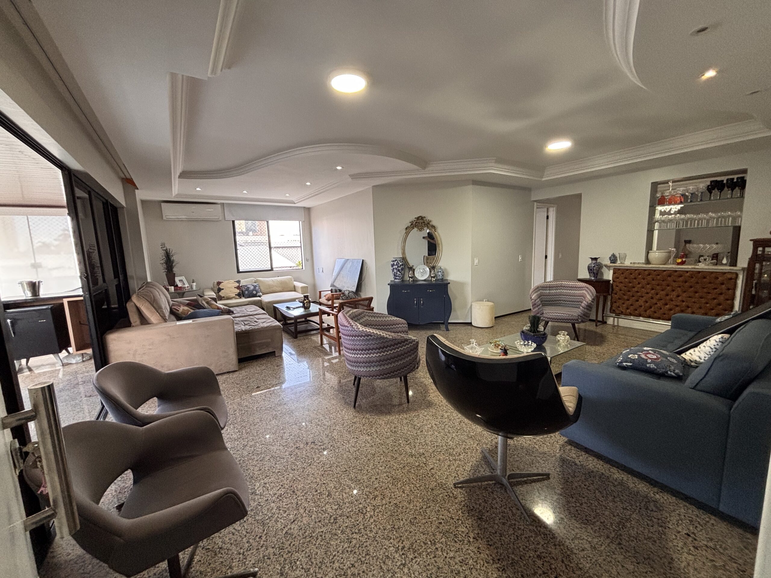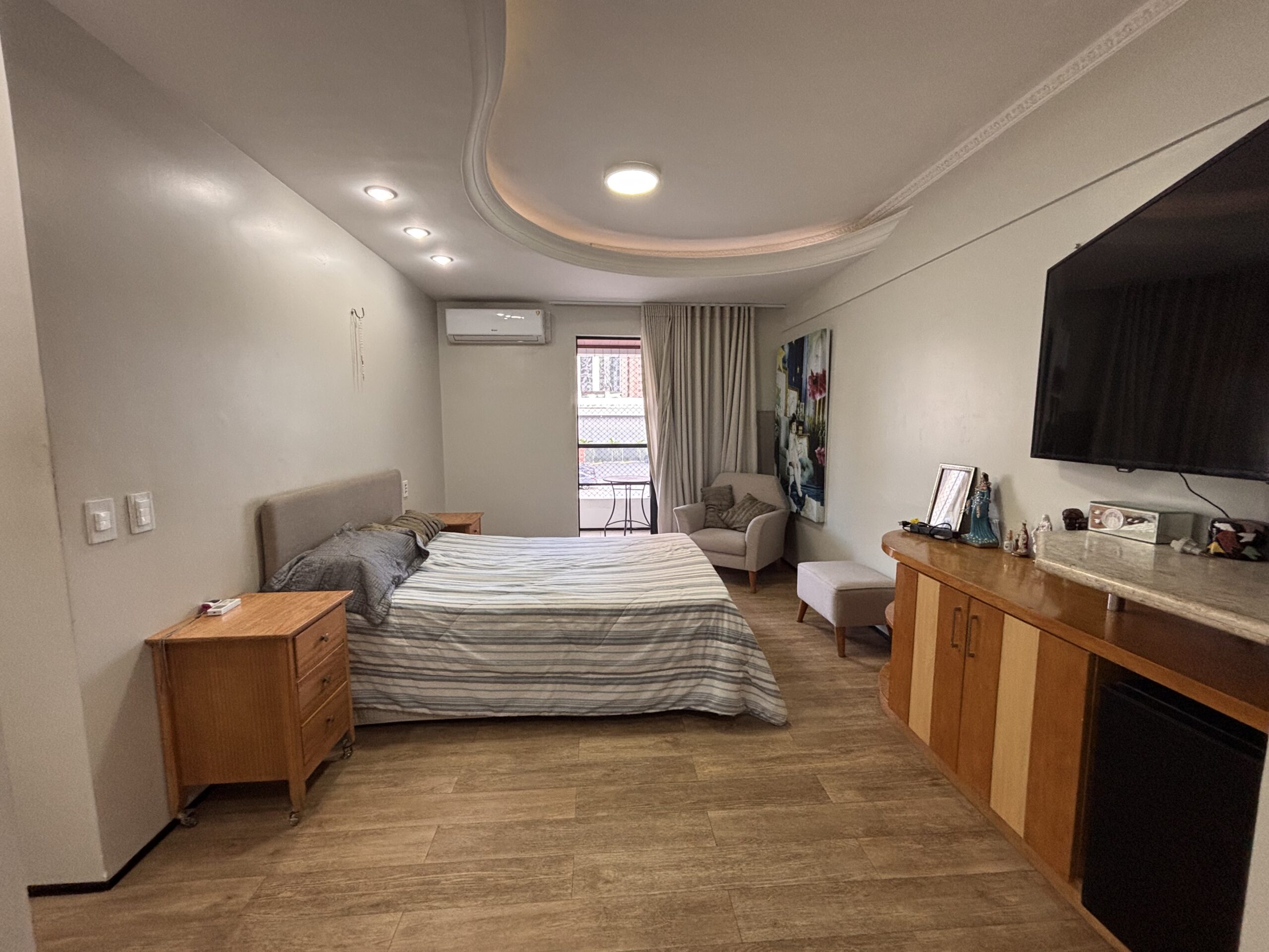Imóvel totalmente mobiliado, com móveis planejados, eletrodomésticos, ar-condicionado, piso em granito e sacada com vista para a avenida.