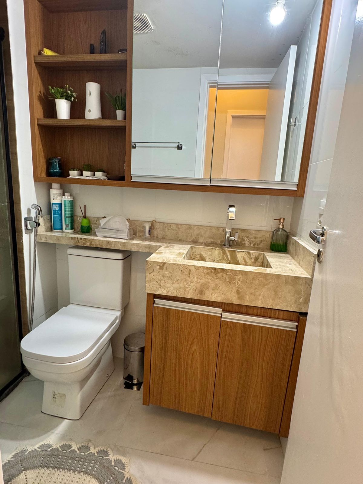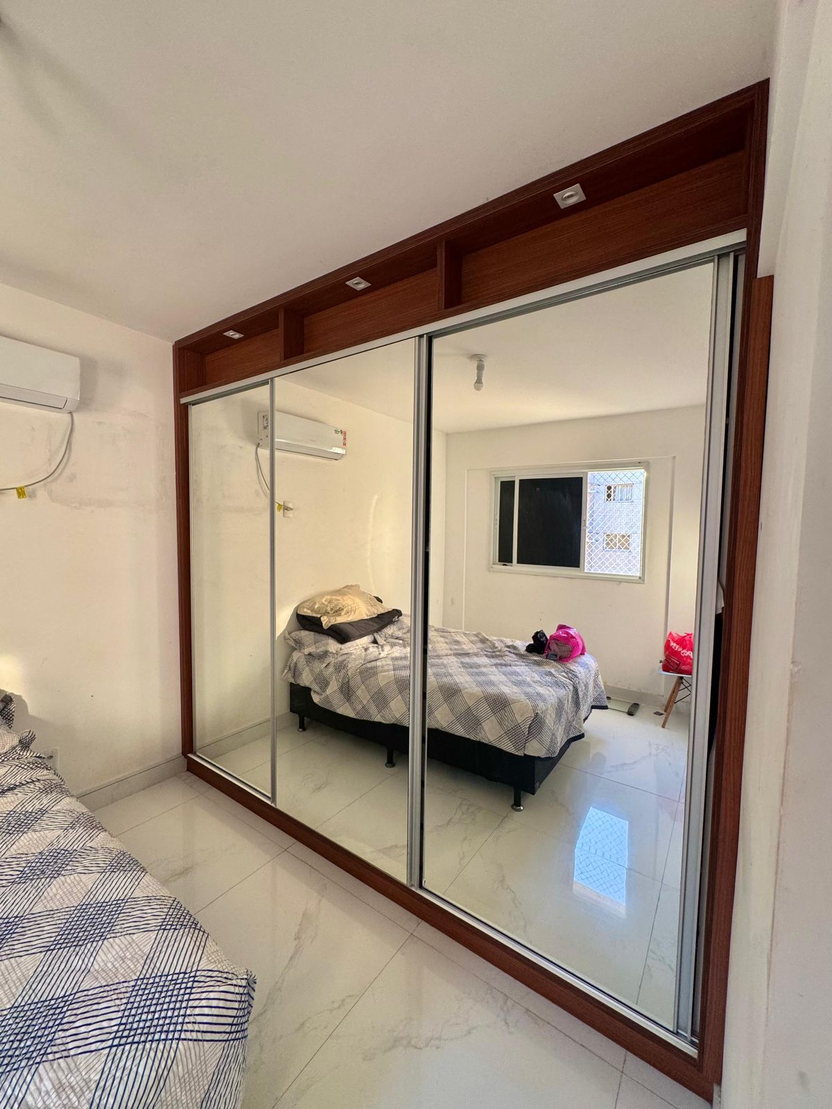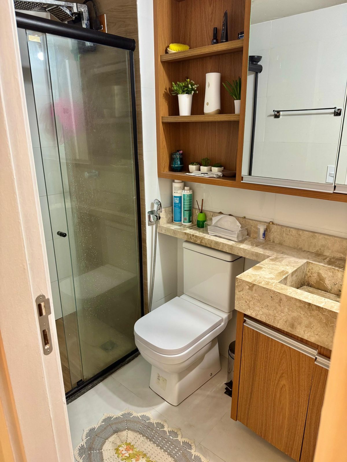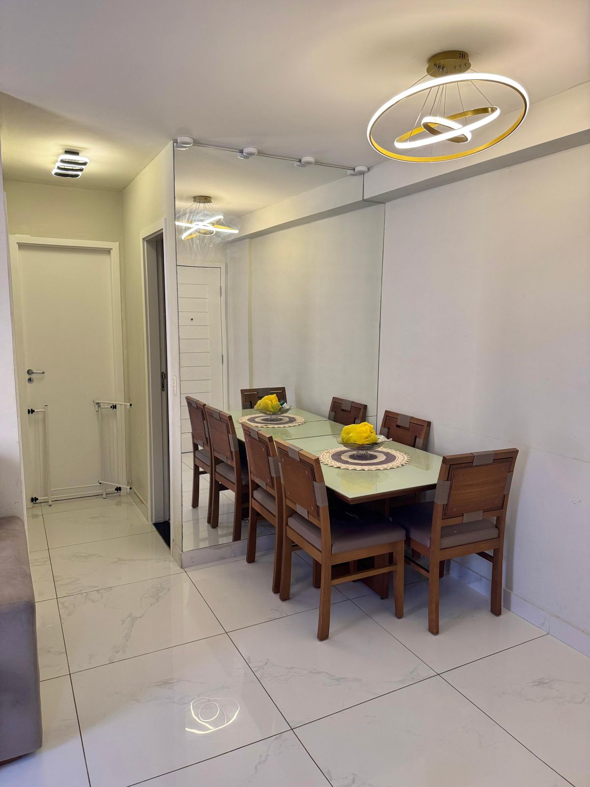 Características: apartamento de alto padrão com 56m², composto por 2 quartos, sala, cozinha planejada, área de serviço, banheiro social e 1 vaga de garagem. Ambientes com móveis planejados, piso porcelanato, sacada, teto em gesso, box no banheiro e janelas em alumínio.