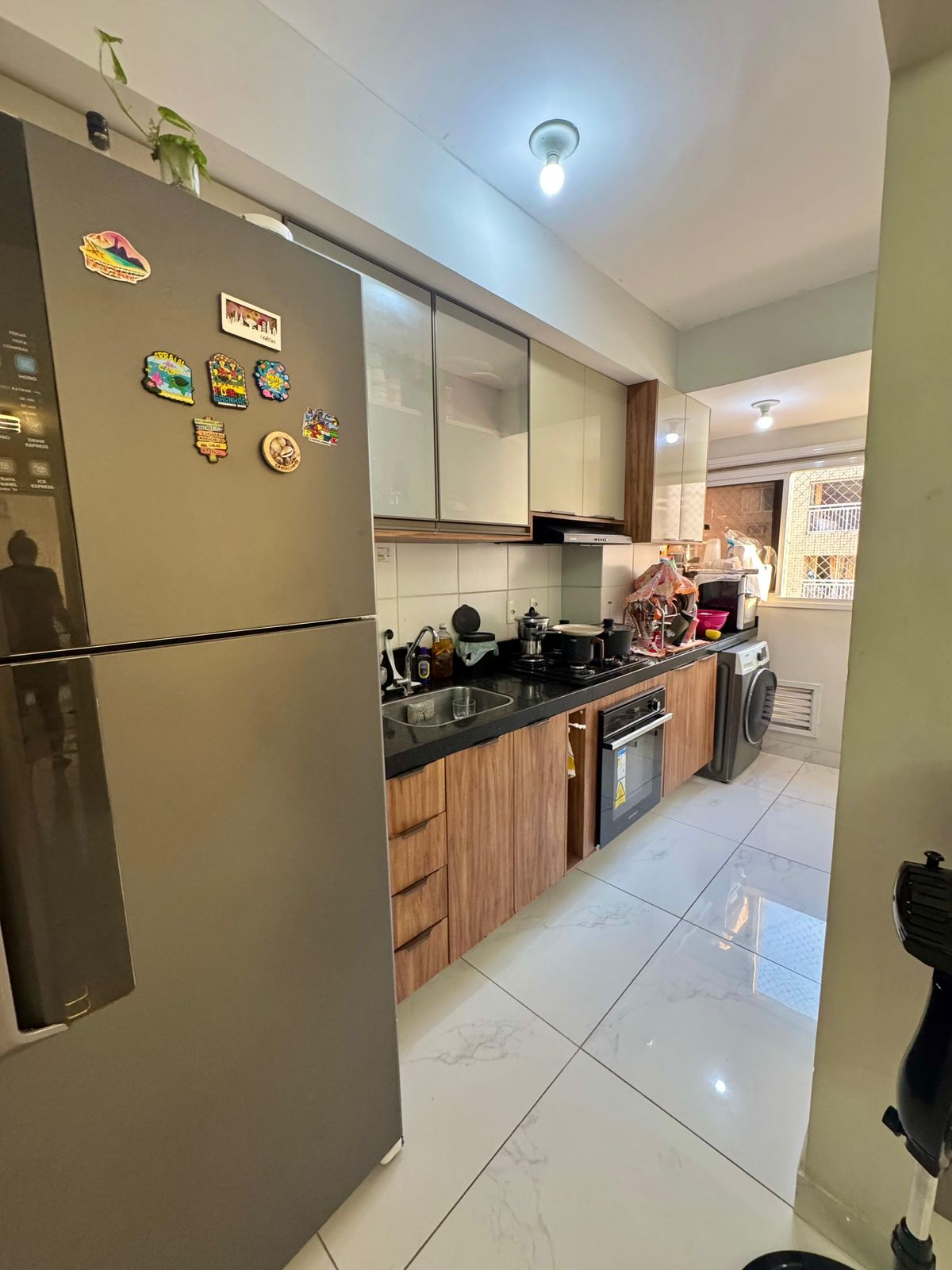 Condomínio pastilhado e completo, com piscina, academia, espaço gourmet, salão de festas, playground, brinquedoteca, quadra de esportes, churrasqueira, bicicletário, portaria 24h, sistema de câmeras, vagas para visitantes e acesso para PNE.