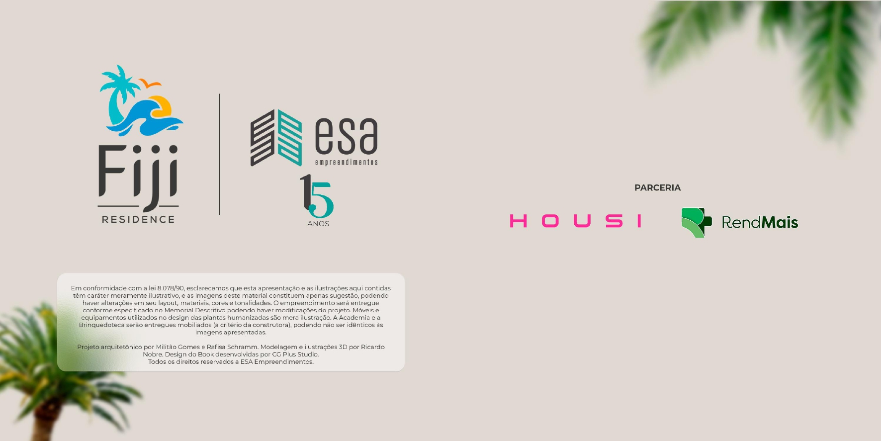 Inspirado nas paisagens tropicais e no estilo de vida contemporâneo, o Fiji Residence se destaca por unir arquitetura atual, lazer completo e tecnologia Housi, criando um ecossistema inteligente para morar ou investir com eficiência.