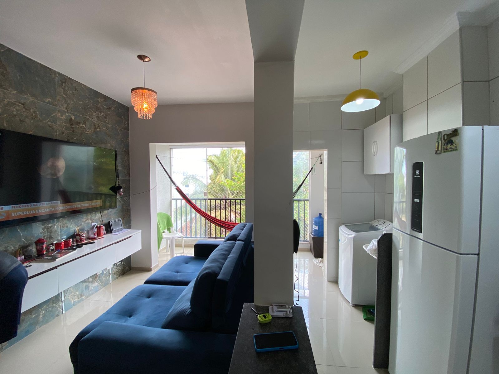 Características: Apartamento mobiliado com 58m², localizado no 3º andar (acesso por escada). Possui sala com sacada, cozinha planejada, área de serviço, 2 quartos, banheiro social e 1 vaga de garagem.